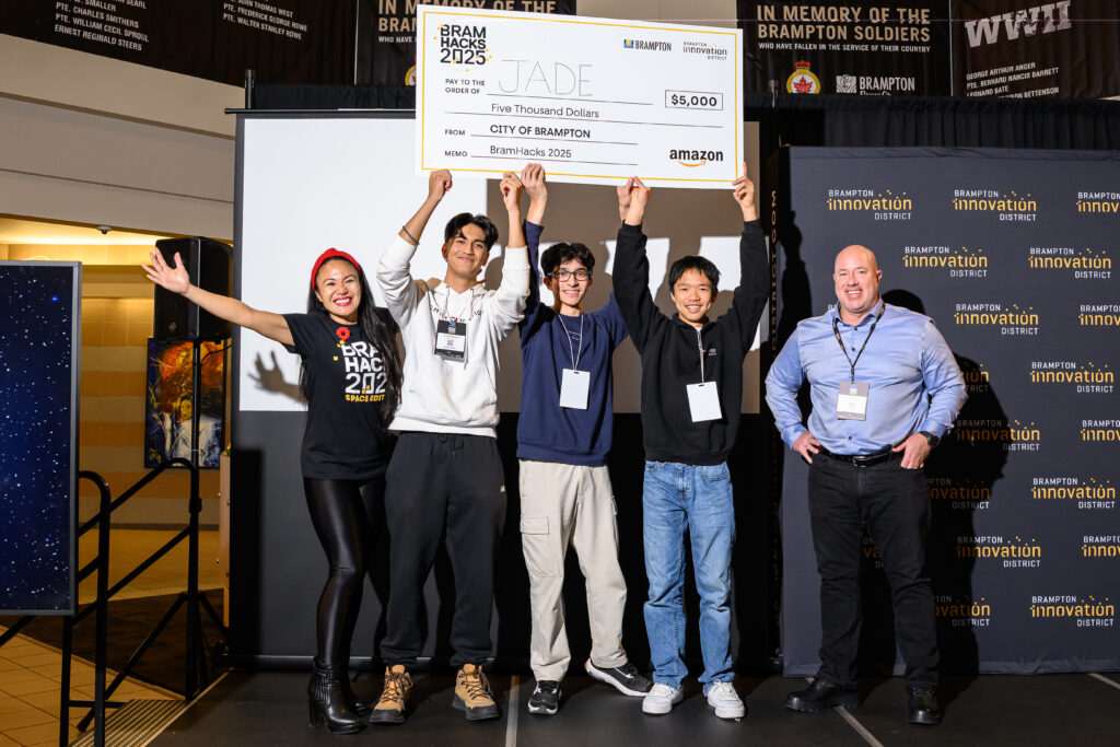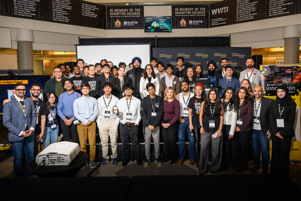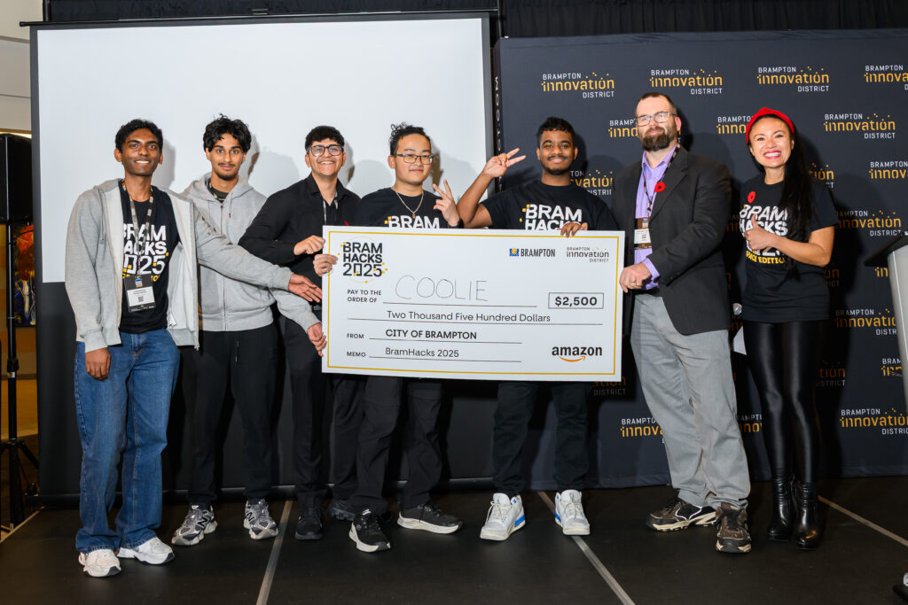 BramHacks 2025, administered by HackWorks, is a partnership between the City of Brampton’s Economic Development Office and Brampton’s Innovation District, proudly sponsored by Amazon, Toronto Pearson International Airport, Canon Canada, Pizza2Go and Downtown Brampton BIA with support from local post-secondary institutions and industry mentors including Sheridan College, Toronto Metropolitan University, Zebra Robotics, Youth Culture, Make Stuff Move, Downtown Brampton BIA and Algoma University. In collaboration with Ibentos, a BHive start-up, this year’s hackathon introduced a digitally immersive experience powered by an AI assistant and virtual networking community, taking participant engagement to the next level.